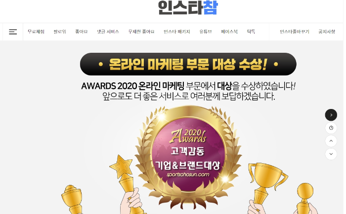인스타참은 인스타그램을 활용한 마케팅 꿀팁 및 정보들을 알 수 있는 사이트로 인스타 팔로워, 좋아요, 인스타 패키지 등 다양한 서비스 제공하고 있다. 혹시 인스타그램 마케팅을 필요하다면 이 사이트 통해 정보를 얻으면 좋을 것 같다.
