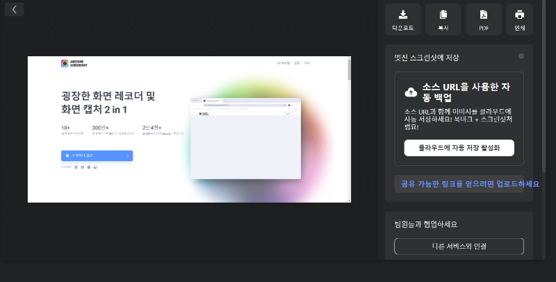 특히 편집 도구, 다운로드, 공유 등 다양한 기능이 있어서, 이 확장 프로그램 하나만으로 다른 캡처나 녹화 프로그램이 필요 없을 정도로 업무 작업이 손쉽게 가능할 것 같습니다