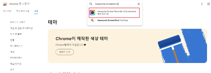 1. Chrome 웹 스토어에 접속해 검색창에 ‘Awesome Screenshot’을 입력하고 검색합니다.
