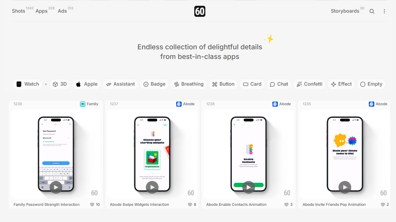 60fps - UI/UX animation inspiration for mobile & web apps
