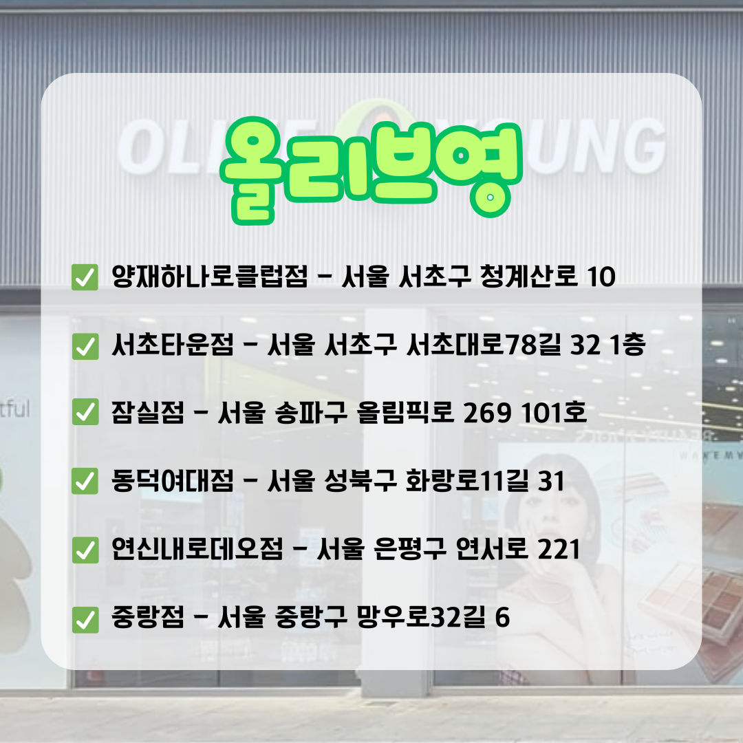 서울시 내 연매출 30억 원 이하 올리브영 가맹점 중심으로 소비 쿠폰을 사용 가능한 서울 올리브영 매장 리스트